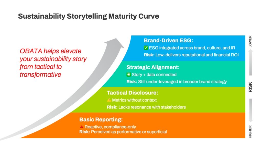 OBATA helps organizations transform complex ESG data into clear, credible, and visually engaging communications that strengthen reputation, attract investment, and align your brand with leadership values.