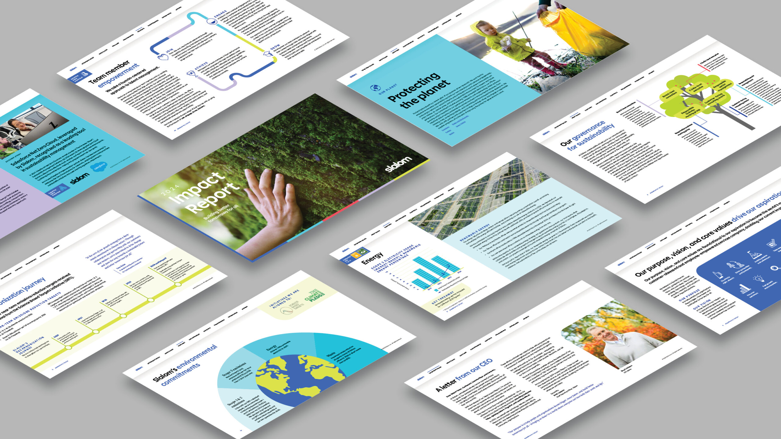 Developed for broad stakeholder audiences, sustainability reports connect operational performance and long-term strategy through clear storytelling and visual design.