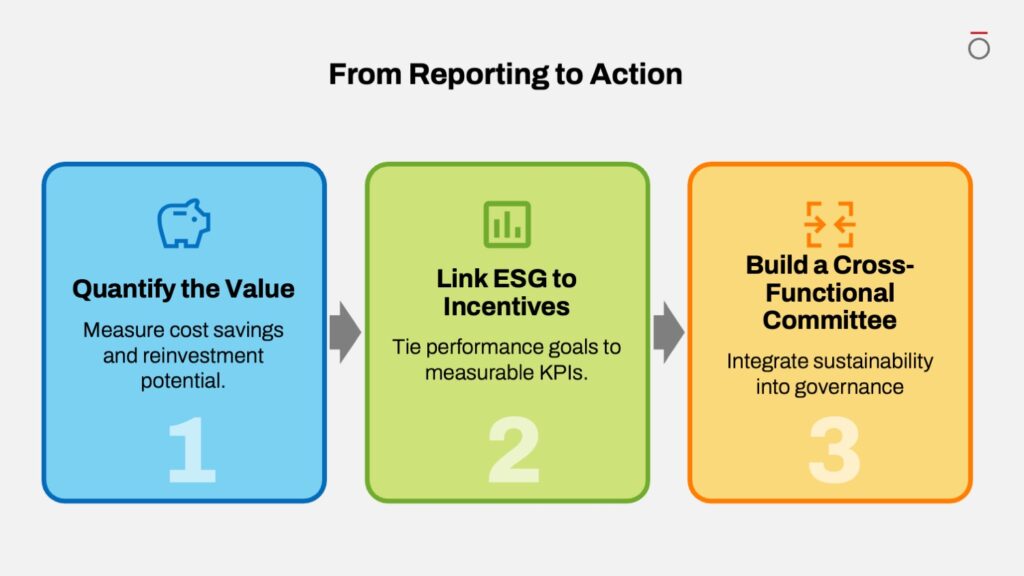 Quantify the Value: Analyze the cost savings and value created through sustainability initiatives, then use that data to make the case for reinvestment and additional resources.